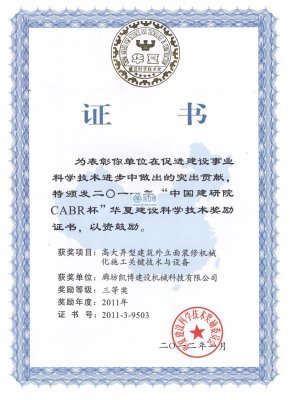 華夏建設科學技術獎 高大異型建筑外立面裝修機械化施工 關鍵技術與設備